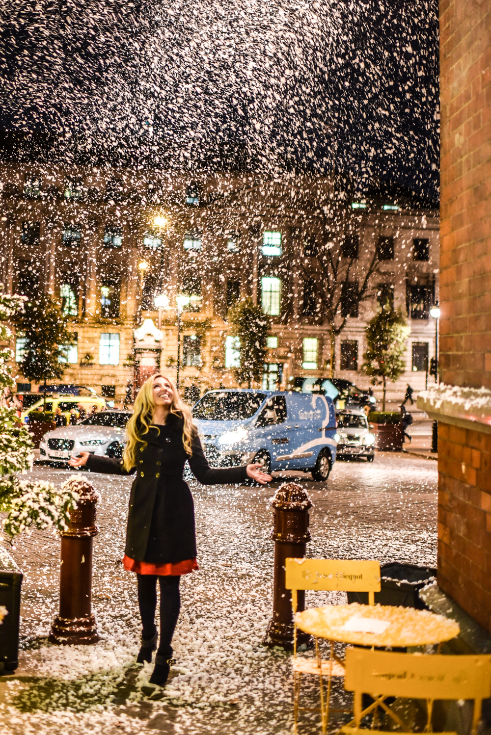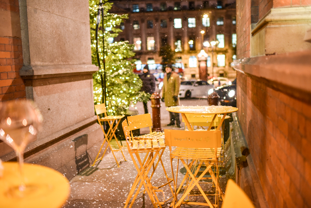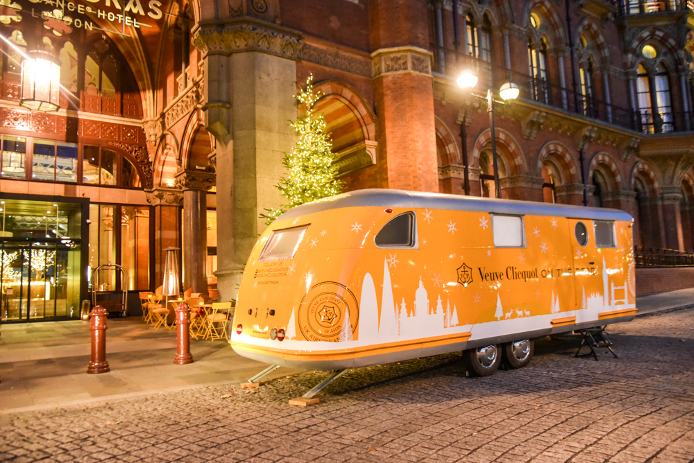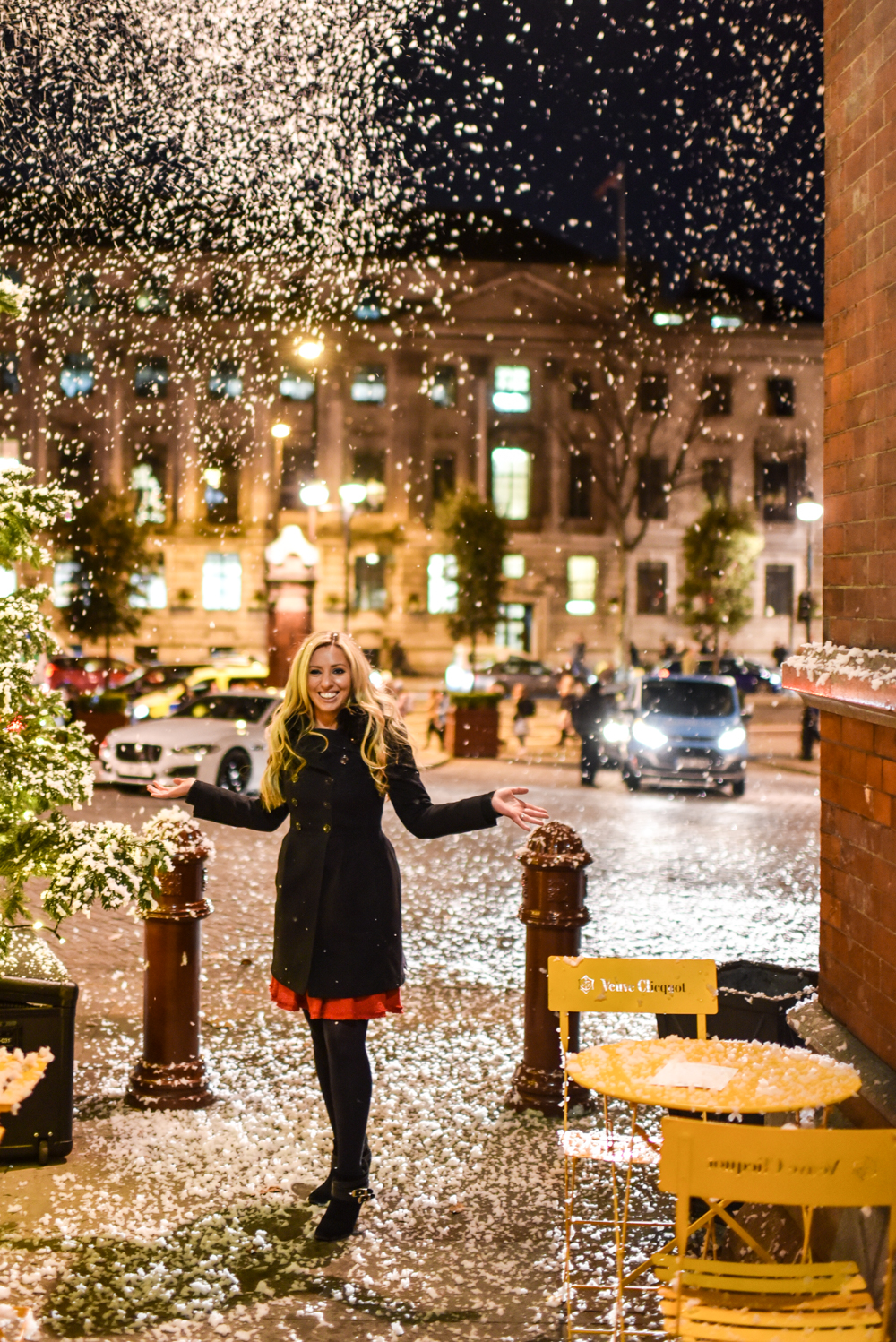 It started to snow…right there on Veuve Clicquot Winter Terrace at The St Pancras Renaissance hotel…
