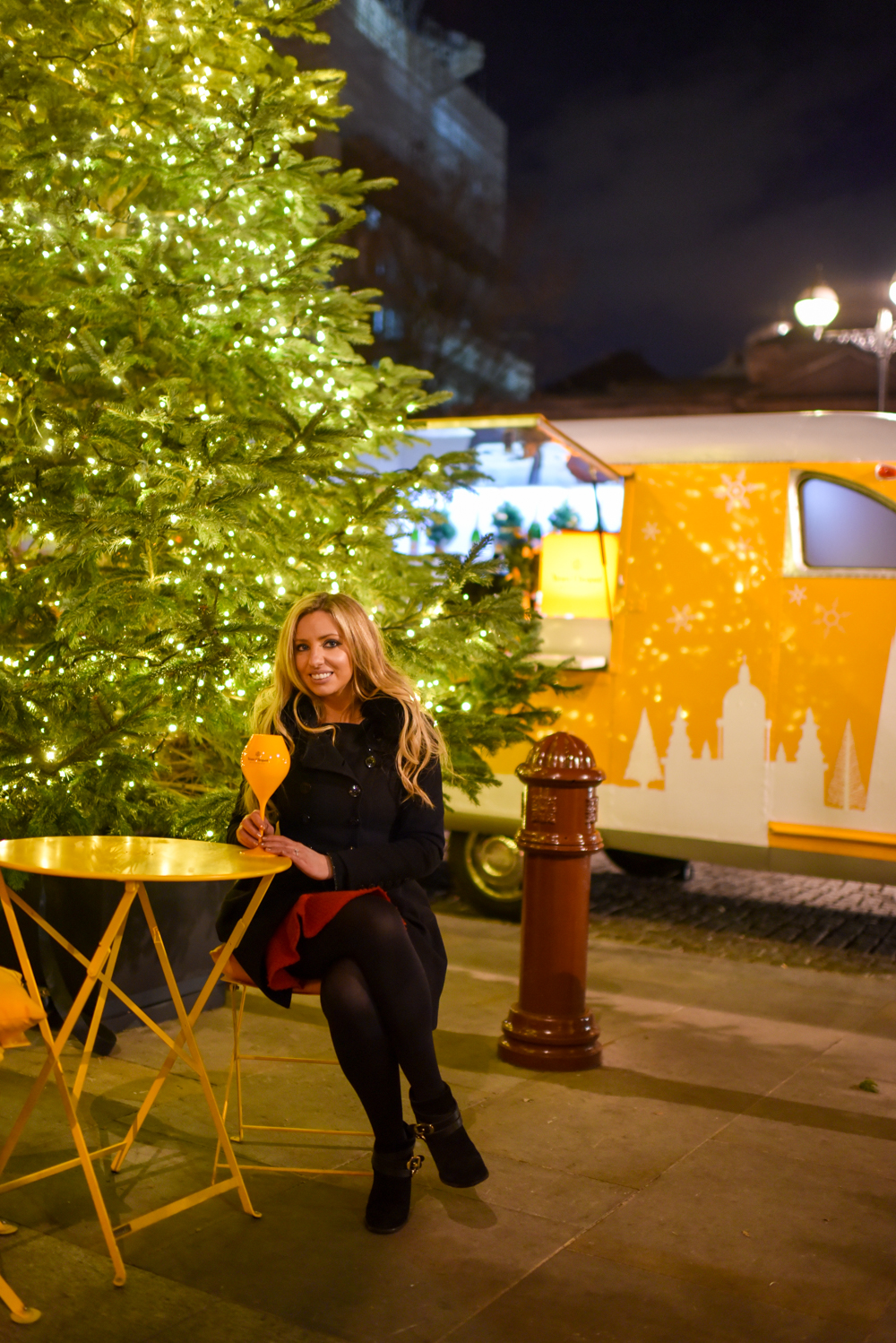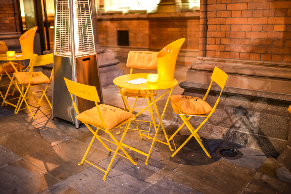As part of a collaboration with the hotel, I invited some of my favourite bloggers to the terrace to enjoy some bubbles and big dose of festive cheer! We kicked off with a tasting led by Lucy, the ambassador from Veuve Clicquot. Founded in 1772 Philippe Clicquot-Muiron, the more famous figurehead for Veuve Clicquot was Philippe’s son’s wife, Barbe-Nicole Ponsardin. Widowed in 1805 she took control of the company, the first woman to ever run a champagne house, and leading it to great success. The word ‘Veuve’ actually means widow and the house has been a pioneer in the modern production of Champagne with the invention of the riddling wrack.