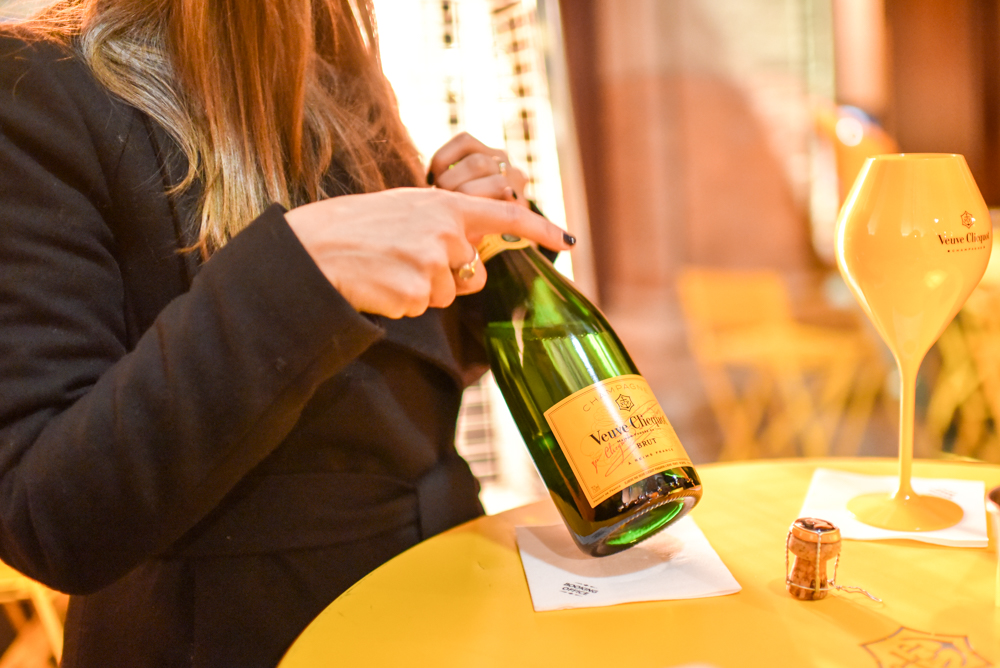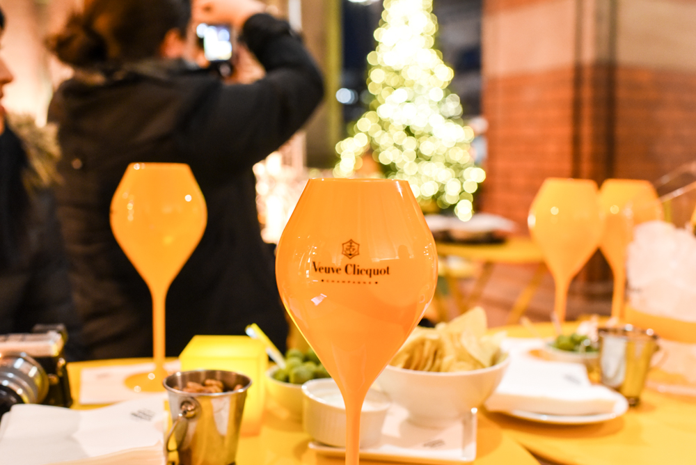 Fitted out in the brand’s distinctive yellow tones, is the Veuve Clicquot Winter Terrace. `
