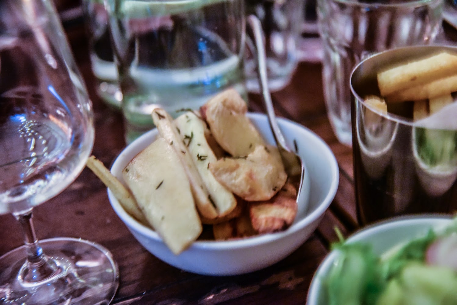 Also on the table were perhaps every different type of potato imaginable: fries, roasties, mash plus a bowls of parsnips.