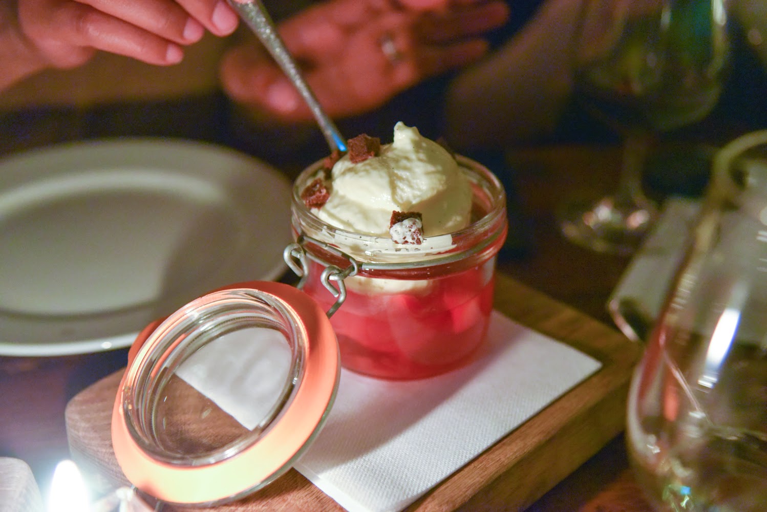 Yorkshire Rhubarb jelly with gingerbread ice cream (rhubarb fans at one end of the table hogged this one)