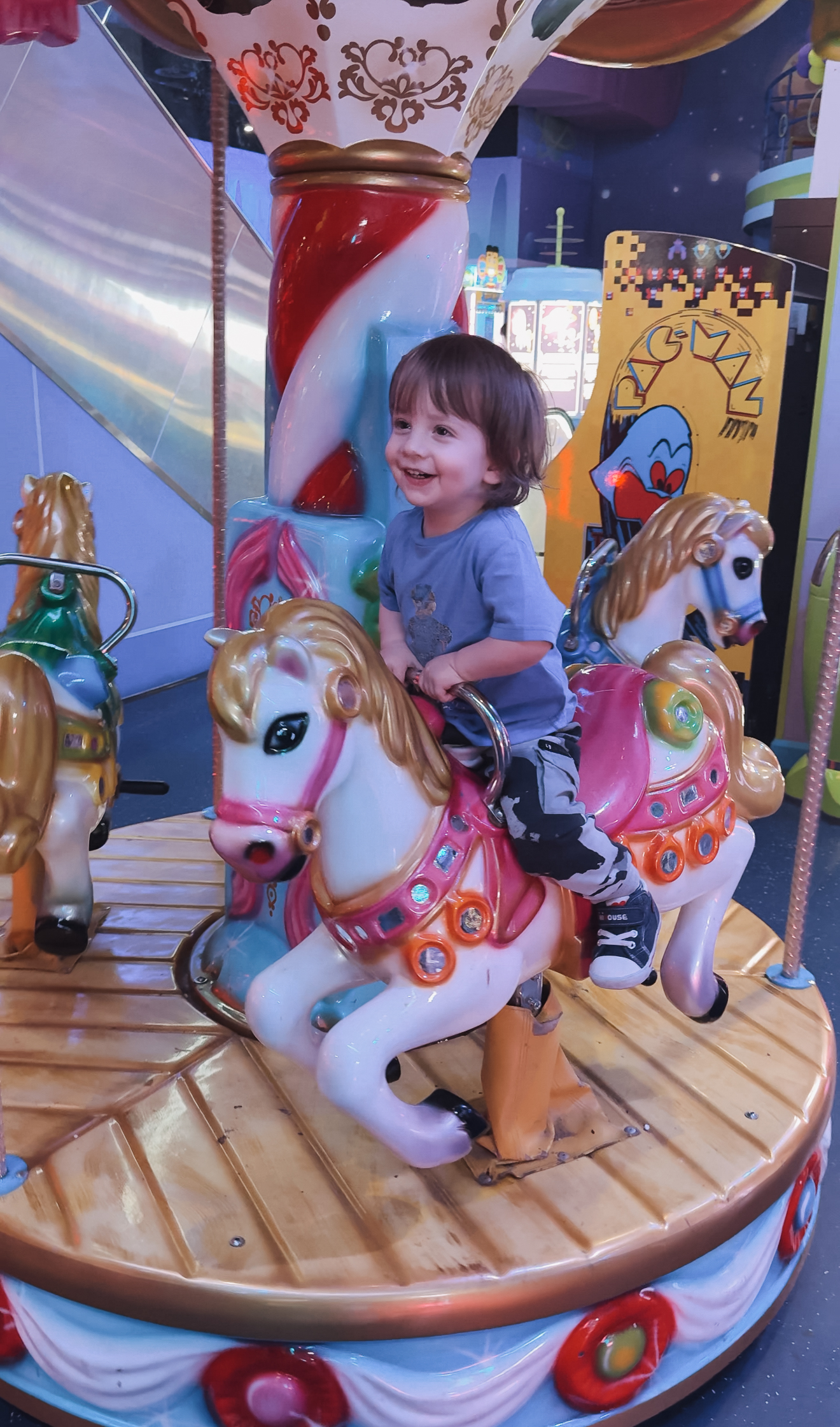 Babylon – A theme park that is entirely indoors with a fun space theme. There’s lots of attractions such as an indoor roller coaster (thrill seeking Oscar loved this!), bumper cars, video games plus a soft play. There’s lots for toddlers too and Noah liked the carousel.