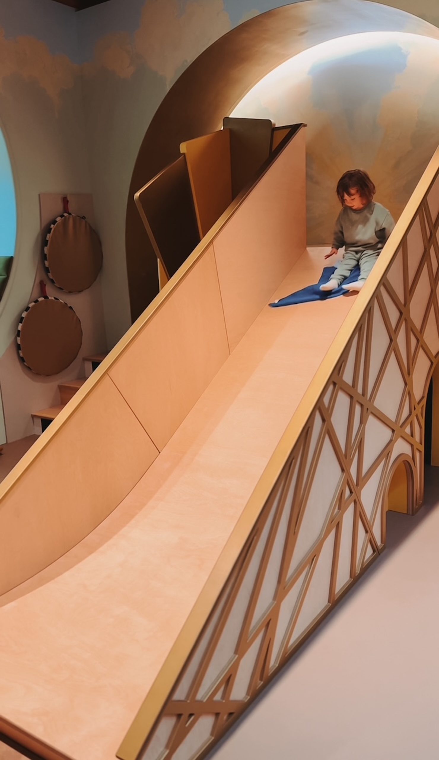 Dulwich Picture Gallery has a gorgeous ArtPlay Pavilion located in the Gallery’s Sculpture garden developed by Hold Art Collective. The Pavilion draws inspiration from classic works in the Dulwich Picture Gallery Collection allowing children to ‘run across Canaletto’s bridges’ or ‘swing among Poussin’s cloud’ with sensory rich activities inspired by sunlight, water, wind and earth. It features sustainable materials and circular windows to connect the light and the garden. Outside children can play on a sculptural slide created by Harold Offeh. The whole experience is a gorgeous combination of art, play and nature.